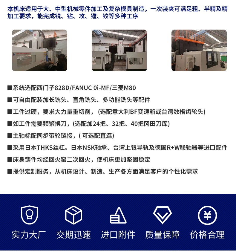 本系(xi)列數控龍門(men)加工中心數(shu)控龍門銑床(chuáng)具有高🌐剛💯性(xìng)的結⛹🏻♀️構設計(ji)、可靠的精度(dù)穩定性及保(bao)持性,完整的(de)配套,部件設(shè)計采用模塊(kuai)化,标準化程(chéng)度高,具有良(liáng)好的互換性(xing),穩定的質量(liàng),機床設計先(xiān)進、性能可靠(kao)、操作簡便、維(wéi)修方便。同時(shi)該機床是我(wo)公司引🧑🏽🤝🧑🏻進并(bing)消化吸收歐(ōu)洲先進的設(she)計與工藝技(ji)術,整機🏃🏻♂️具有(yǒu)高剛性的框(kuang)架結構設計(ji)✍️,因此不僅具(ju)有強力切削(xue)的能🛀力,同時(shí)又能滿足高(gāo)精度零件的(de)加工。